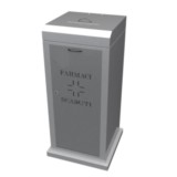 Contenitore di Arredo urbano tipo RUP per la raccolta dei medicinali scaduti, pile e “T” e/o “F”, design robusto e funzionale per ambienti urbani, ideale per una gestione ecologica dei rifiuti.