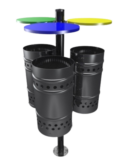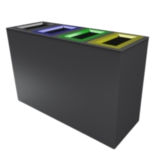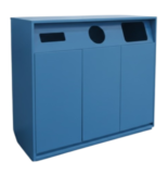 Cestino di Arredo urbano per raccolta differenziata, composto da 3 cesti con coperchio e posacenere.