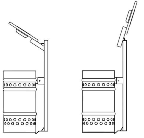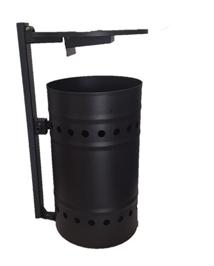 Cestino stradale sagomato a basso impatto ambientale, privo di prodotti nocivi e/o tossici, realizzato in lamiera di acciaio di spessore 1,2 mm. Il corpo del cestino, di diametro Ø 285 mm, profondità 480 mm e capacità 30 litri, è fissato alla staffa di sostegno mediante aggancio inferiore e vite superiore, garantendo stabilità e facilità di manutenzione. Il bordo superiore è antitaglio e il corpo è dotato di n. 3 nervature di rinforzo con decorazioni circolari Ø 20 mm, che conferiscono maggiore robustezza e un aspetto estetico curato. Il sistema è completo di staffa per il fissaggio a palo Ø 60 mm, tramite due staffe M8 in acciaio zincato non verniciate, progettate per assicurare una solida installazione e resistenza agli agenti atmosferici. Il coperchio, realizzato in lamiera di acciaio spessore 2 mm con sagomatura di rinforzo, è apribile per agevolare le operazioni di introduzione e rimozione delle buste interne. È inoltre completo di posacenere in acciaio inox, dotato di sistema di svuotamento automatico all’apertura del coperchio.