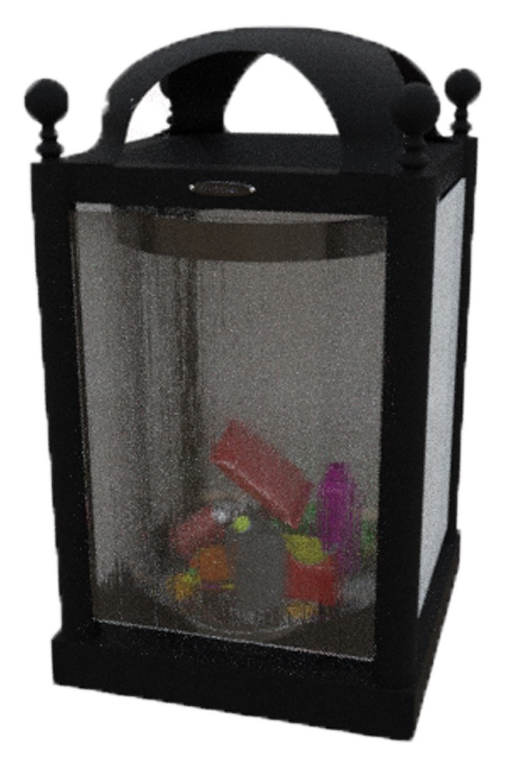 Cestino stradale anti bomba (antiterrorismo) costruito in lamiera spessore 2 mm, con anello reggisacco e lati aperti per il controllo interno,