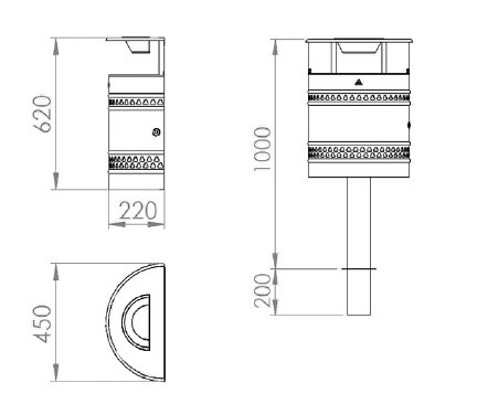 Personalizzabile per adattarsi a qualunque esigenza di arredo urbano, questo cestino è disponibile con coperchio e posacenere, e può essere fissato tramite speciale staffa per ancoraggio al muro, palo con flangia o inghisamento.