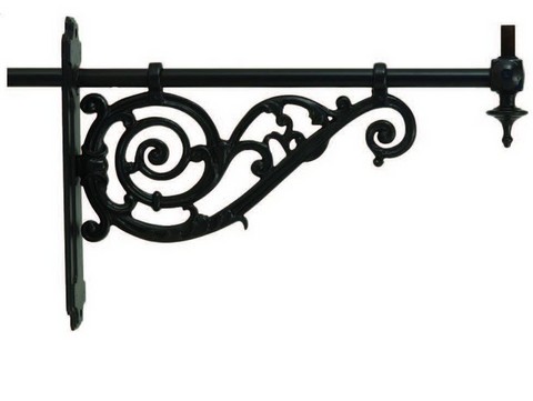 Mensola ornamentale composta da tubo portante Ø 30mm in acciaio zincato a caldo UNI EN 1561, adatto per il passaggio dei cavi elettrici. Puntale e decoro ornamentale in fusione di ghisa EN GJL 200 UNI EN 1561. Attacco ¾" gas in acciaio zincato per il fissaggio del corpo luce. Piastra a muro in fusione di ghisa EN GJL 200 UNI EN 1561, fissata al tubo portante tramite viti ed elettrosaldatura.