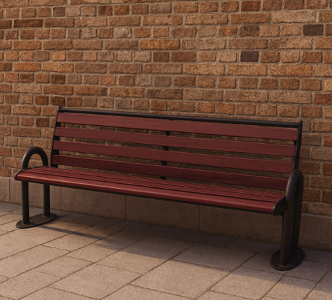 Panchina composta da 2 spalle in tubo calandrato di acciaio zincato a caldo UNI EN 1179 9/97, Ø 60mm, di spessore 3,6mm, alle quali vengono fissati due sostegni in lamiera di acciaio spessore 6mm.